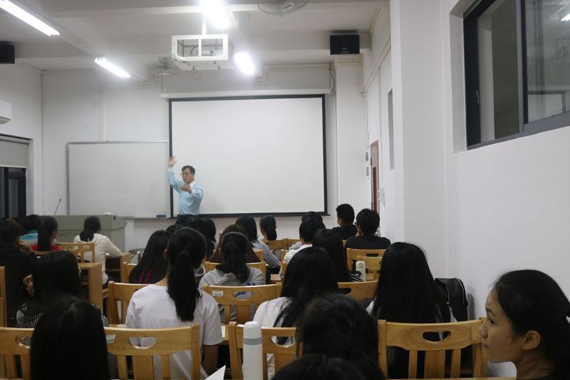 谈完酒店方面的热门前景,宋先生对即将从事酒店管理人这一职务的同学们也进行了教育。宋先生运用生动的故事,触人心弦的真实事例提出了同学们作为一名优秀的酒店管理者,应当不断扩大自己的知识面,使自己的知识结构完整。同时也讲述了一些酒店行业细节服务,例如杯酒的搭配,接电话要分四步走,保护客人的隐私等一些容易被忽略的关键细节。