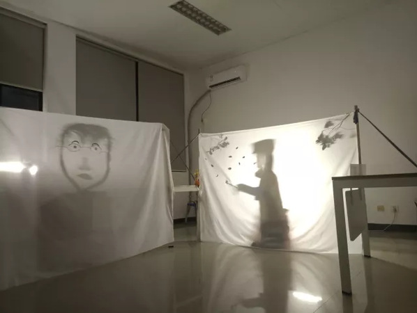 在指导老师许曦的带领下,数字媒体艺术1班的同学们用3天的时间准备与完成了这场展览。这次的展览要求同学们运用身边的一切材料,通过光和幕布的投影效果,完成一副肖像创作。展览的设计要求同学们对绘画,造型等多种艺术元素有较好的理解与运用,对于从未接受过专业艺术教育的数字媒体艺术一班的同学们来说,这的确是个不小的挑战。