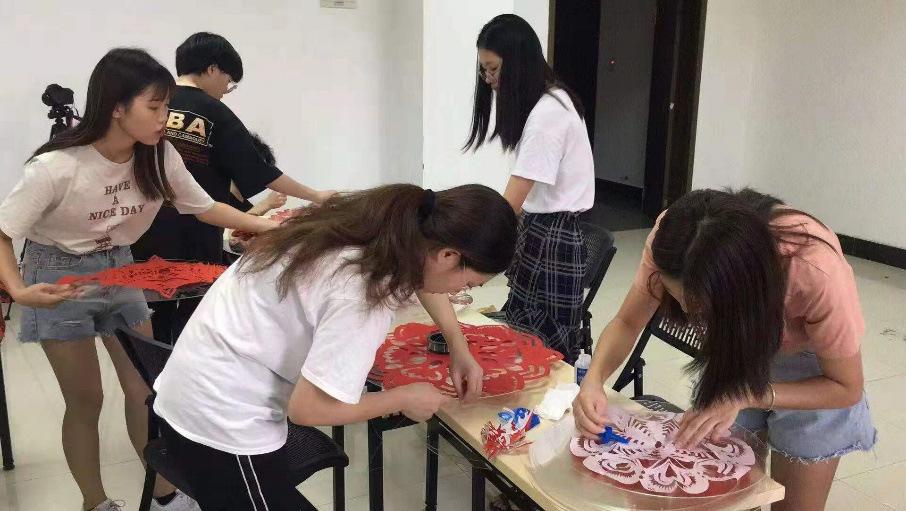 我院教师乔国玲为同学们展示剪纸艺术