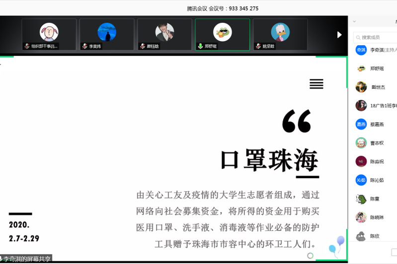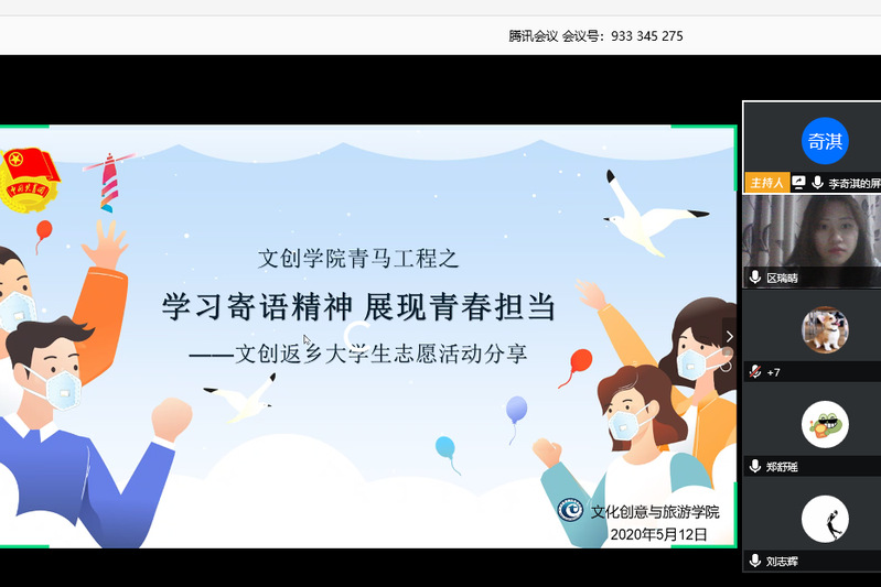 为深入实施“青年马克思主义者培养工程”,切实做好疫情防控期间广大团员青年的思想引领工作,文化创意与旅游学院于云端分别开展“武汉加油 致敬逆行先锋”线上知识竞赛和“学习寄语精神,展现青春担当——文创返乡大学生志愿活动分享”活动。学院200余名团员青年参加了此活动。