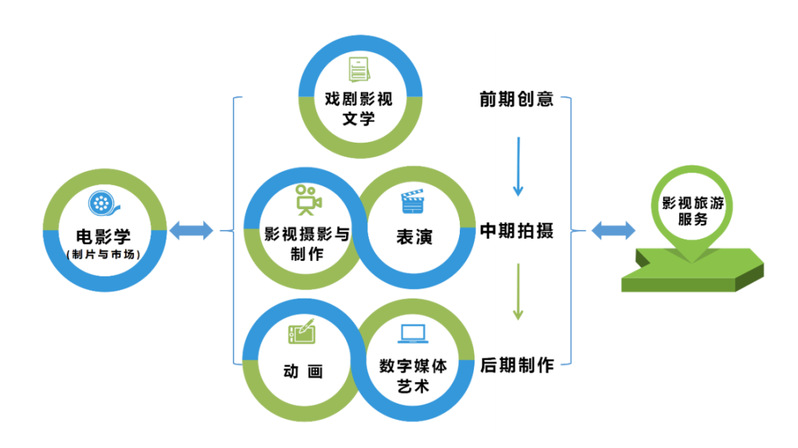 影视产业学院人才培养计划培养对接影视创作前期、中期、后期各环节的人才,形成完备的人才输出体系。为此,学院计划开办一系列本科和硕士专业。学院2020年招收数字媒体艺术、动画2个本科专业,并申请新增戏剧影视文学本科专业。在学校已有艺术硕士专业下增设“电影经营与管理”“电影剧本创作”“电影制作”等方向,并将于2021年开始招生。预计到2025年,学院将拥有影视产业全链条的六大专业和两大辅助性专业,培养本科生不少于1600人。