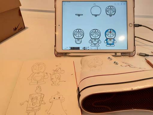 王同学:让我感受最深的就是寓教于乐的教学方式,这种方式能够很好地激发我的创作灵感,无论是在课堂内还是在课堂外,我有着充分的激情和动力去创作和完善我的作品,上面的每一笔每一画都蕴含着我对国货与国潮的理解与追求。