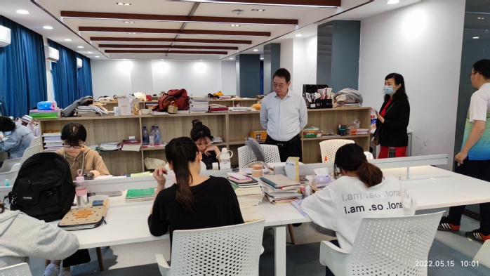5月15日上午,副校长邹新月在佛山校区值班期间,慰问值班值守的师生们,走访了有为书院22栋园区,检查了同心楼实验室,佛山校区管委会后勤办主任周琪锋和湾区影视产业学院党委副书记路军奉陪同。