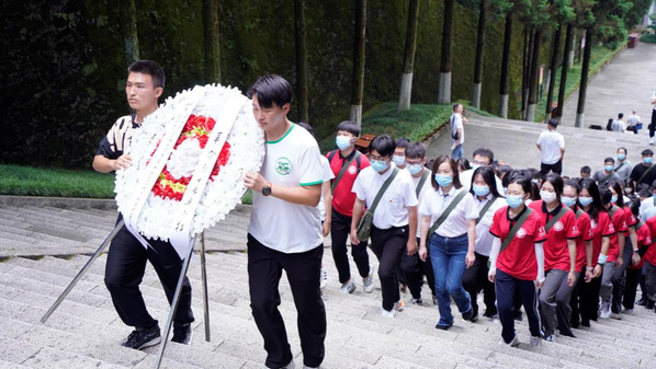 在烈士陵园里,青松翠柏,庄严肃穆,超过48000名英雄长眠于此,而有名可查的仅有15744个,剩下的三万多名无名英雄留在了白玉无字碑上。在老师的真挚讲解中,我走进了那一段艰苦卓绝的时空。纪念堂不大,但是墙上的每一张画像,每一个姓名让我切身感受到了个个英雄鲜活的生命。作为青年党员,我深刻认识到了什么是坚定信仰,我们的革命先烈为了人民抛头颅、洒热血,身先士卒,不怕牺牲,新时期的我们也应该学习先辈,敢为人先,求实创新,勇于奉献,将井冈山精神传播到更远的地方!——吴晓俏(21级广播电视艺术研究生,“粤有影力”团队队长)