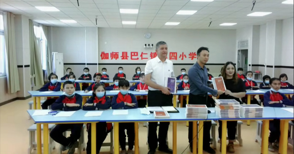 图 曾庆国副局长代表联合方为伽师当地教育局和中小学捐赠图书