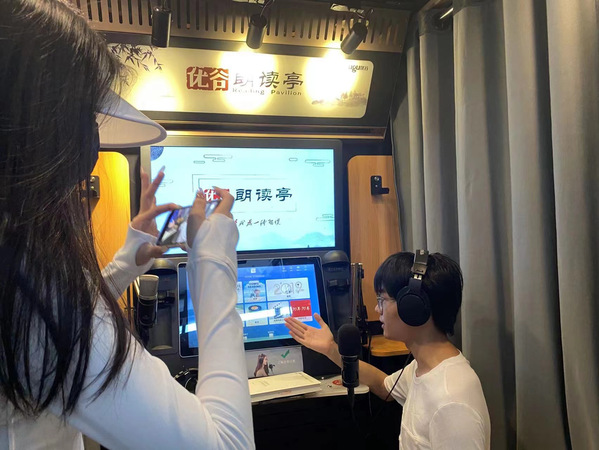 广财同学在直播中介绍图书馆朗读亭