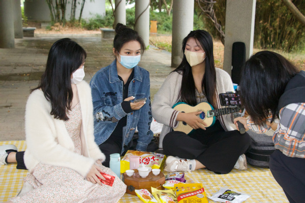 福师大同学在文化街美食城的报道现场