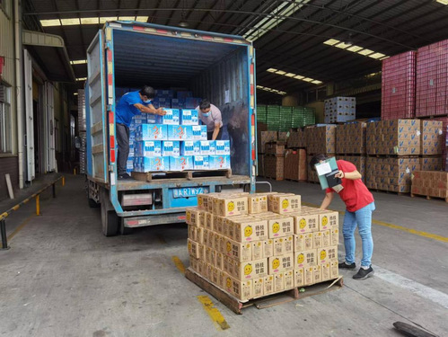 11月15日中午,广东隐雪集团捐赠的1300余箱饮料物资在佛山三水隐雪食品有限公司基地装载完成。两个多小时后,这18000余瓶杨枝甘露、波子水等同学们爱喝的饮料满载着甜蜜的力量抵达广州校区,将配送给校区内一万八千余名师生。广东隐雪集团负责人丘子安表示,非常乐意有这个机会,让同学们喝上三水的饮料,他们尽可能协调满足每人一份,为学校抗疫保障同学们生活尽一点绵薄之力,