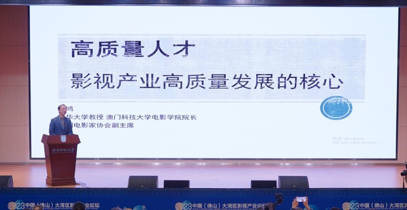 中国电影家协会副主席、清华大学教授、澳门科技大学电影学院院长尹鸿代表澳门科技大学致辞,并发表题为《何为人才?——影视产业高质量发展的核心竞争力》的演讲。他认为青年人才决定着中国电影的未来。在2022年票房过亿的29部影片中,80后导演占16位,超过半数。年度票房榜前五名的影片有4部的导演为80后,累计票房趋近于全年总票房的三分之一。这些年轻电影人才的优势是掌握现代电影的语言和技术,敏锐理解观众的痛点、难点和市场爆点,善于寻找具有稀缺性的电影故事并填补市场空白。但是,年轻制作者在读万卷书,行万里路之外,还要“识万种人”。要用影像在生活中写生。专注、学习、观察和创新,这是人才的共同特点。影视产业高质量发展,是学校、企业、行业、生态的合力。