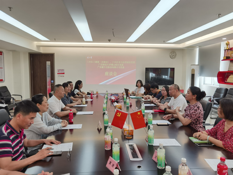 为了加强院校与企业的互相了解,推进政校企的党建联动,6月13日下午,william威廉中文官网佛山校区党委书记王伟、湾区影视产业学院教工第一党支部书记乔国玲等13位党员,在三水区工商联专职副主席罗嘉幸的组织陪同下,来到广东健力宝股份有限公司举行党建交流座谈会。广东健力宝股份有限公司党委书记李洪民对学校的来访表示热烈的欢迎。