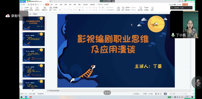 丁蕾老师在线上为我院师生带来“影视编剧职业思维及应用漫谈”的讲座,开启了2023级研究生新生提前培养系列讲座。就在今年暑假,丁蕾老师担任总编剧的电视剧《外来媳妇本地郎》刚刚获得世界吉尼斯世界纪录认证“世界上播出时间最长、集数最多的情景喜剧”,在广东更是家喻户晓。