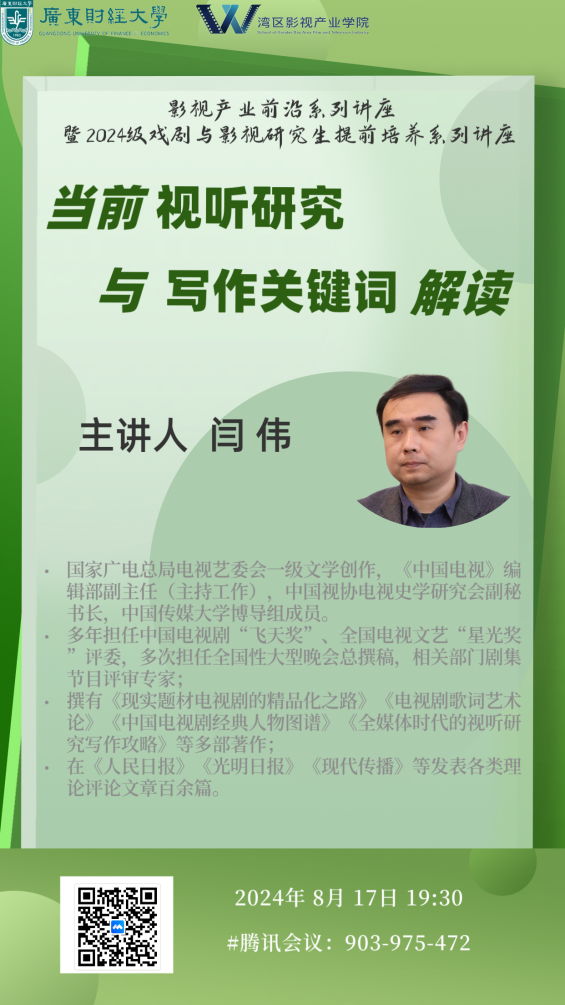 8月17日晚,湾区影视产业前沿系列讲座暨2024级戏剧与影视专业学位硕士研究生提前培养系列活动第二讲“当前视听研究与写作关键词解读”在腾讯会议举行。学院研究生及教师80余人参加活动。