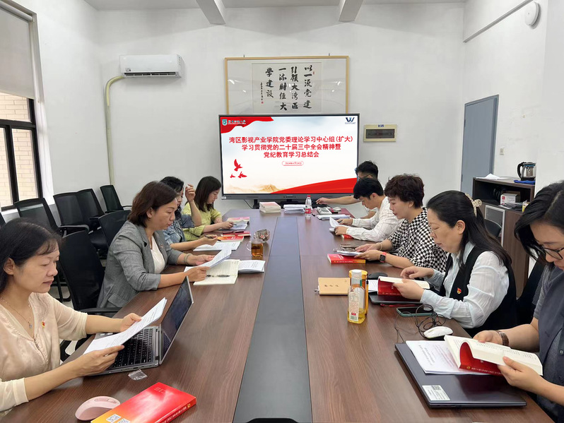 为持续推进党的二十届三中全会精神入脑入心、落地生根,并巩固深化党纪学习教育成果,9月24日,湾区影视产业学院党委理论学习中心组开展了深入学习贯彻党的二十届三中全会精神暨党纪学习教育总结大会。会议由党委书记陈莎莉主持,湾区影视产业学院党委理论中心组全体成员参会。