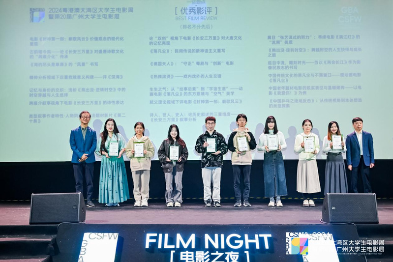 本届粤港澳大湾区大学生电影周暨第20届广州大学生电影展活动由广东省电影局、广东省教育厅、共青团广东省委员会等单位指导,广东省电影家协会、广州市电影家协会等单位主办,面向全国高校在校学生广泛征集作品,共收到剧本74部、影评256部、剧情类短片442部、纪录类短片244部、动画类短片116部,各类作品总计1132部。其数量之多、类型之多元、题材之丰富,充分展现了当代大学生的创作激情和艺术创意。中国电影家协会副主席尹鸿、阿里影业副总裁关旭、FIRST青年影展创始人宋文等国内一线影视行业领军人物参与活动并为获奖作品颁奖。
