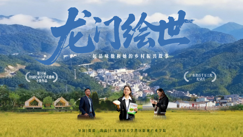 湾区影视产业学院出品的纪录片《龙门绘世》,依托2024年冬季“GREAT湾区青年影视训练营”创作。它以广东省龙门县为背景,讲述了三位普通人的故事。他们以稻米、老屋和画笔为媒介,在产业、空间与文化三个维度上探索乡村振兴的另一种可能。影片以沉静而充满力量的镜头,让我们看到,真正可持续的振兴,源自每一个普通人对自己脚下土地最坚定的守望与最朴实的创造,呈现了在“百千万高质量发展工程”推动下,中国乡村振兴实践中悄然发生的个体命运与土地重生交织的深刻变革。该片于2025年5月在广东电视台经济科教频道播出。